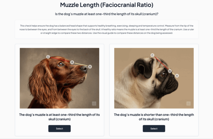 As the official technology partner, the PetProov platform allows APGAW to engage the public in understanding the issues around extreme confirmation, whilst enabling emerging trends to be identified. The IHA helps breeders, vets, welfare inspectors and local councils to visually assess dogs for conformation traits linked to poor welfare, such as breathing restriction, excessive skin folds, impaired gait, and disproportionate body shape. Designed to raise standards and reward responsible breeding, the tool allows users to self-assess any dog using ten structured questions and receive an overall score indicating the dog’s innate health.