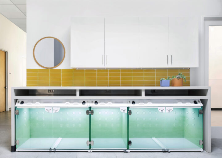 Increasingly, practices are prioritising transparency, with open layouts and glass partitions. This progressive approach offers numerous advantages – improving client trust and satisfaction by enabling owners to observe different areas of the clinic and the care being provided. Modern Animal’s West Hollywood clinic allows clients to see “from one end to the other” (Figure 2), which Chief Medical Officer Dr Christie Long says has the added benefit of promoting staff expertise. Transparency also allows for improved patient monitoring and added visual appeal.
