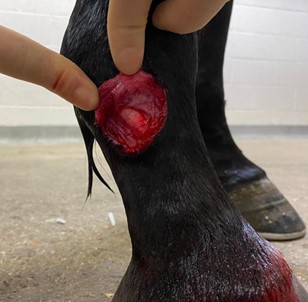 Wounds can present in many different shapes and sizes: a detailed and thorough assessment at initial presentation is essential for decision making regarding treatment, including the potential need to refer, and prognosis. A quick but comprehensive clinical exam (including demeanour, and don’t forget TPR) can provide important information regarding the degree of pre-existing blood loss, pyrexia or other systemic signs of concurrent trauma such as haemoabdomen or pneumothorax. Additionally, a complete assessment of the horse is important to identify any additional, potentially less obvious, concurrent wounds and injuries, particularly those not initially reported by the owner. Although the majority of horses have a comprehensive vaccination history, checking the horse’s tetanus vaccination status and administering tetanus anti-toxin as appropriate is recommended.